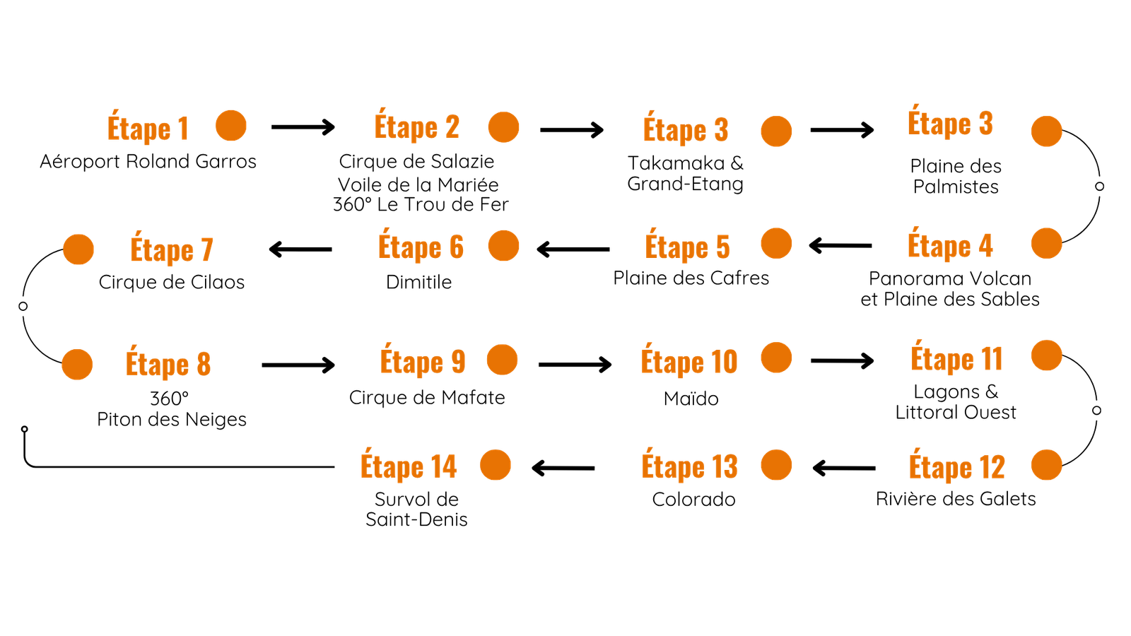 Le circuit Papangue Privilège est l’expérience aérienne la plus complète de l’île. Des cirques verdoyants au Piton des Neiges, des paysages lunaires du volcan aux lagons turquoise de l’Ouest.